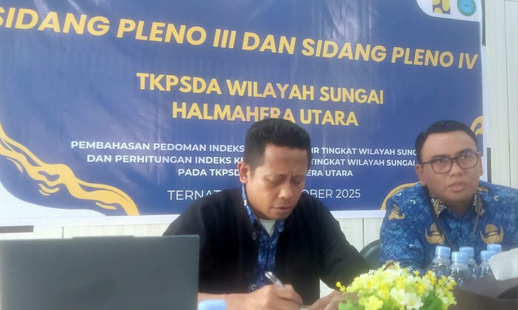 Ternate – Kepala Dinas Pekerjaan Umum dan Tata Ruang (PUTR) Provinsi Maluku Utara, Risman Iriyanto Djafar, mendorong tiga isu strategis utama dalam Sidang Pleno ke-3 Tim Koordinasi Pengelolaan Sumber Daya Air (TKPSDA) Wilayah Sungai Halmahera Utara, yang digelar di Aula Kantor Balai Wilayah Sungai (BWS) Maluku Utara, Kota Ternate, Selasa (28/10/2025).